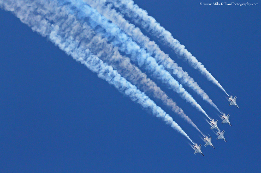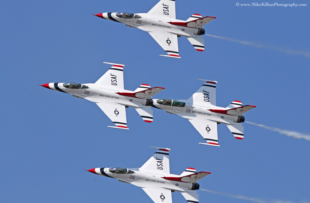 BELOW: Our photo gallery of the USAF Thunderbirds performing for day one of a 3-day air show weekend. Photos Credit: Zero-G News / Mike Killian